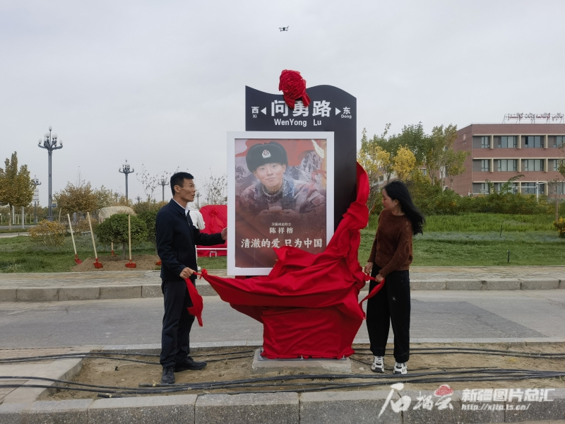 10月17日,“問勇路”在和田揭牌,陳祥榕烈士母親姚久穗受邀參加揭牌儀式。