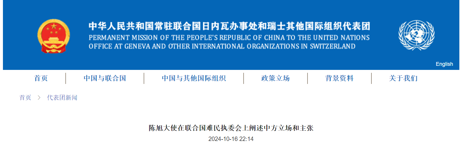 中國常駐日內瓦代表團網站截圖