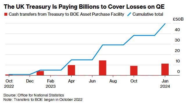 英國財政部正支付數十億英鎊來彌補量化寬鬆帶來的損失