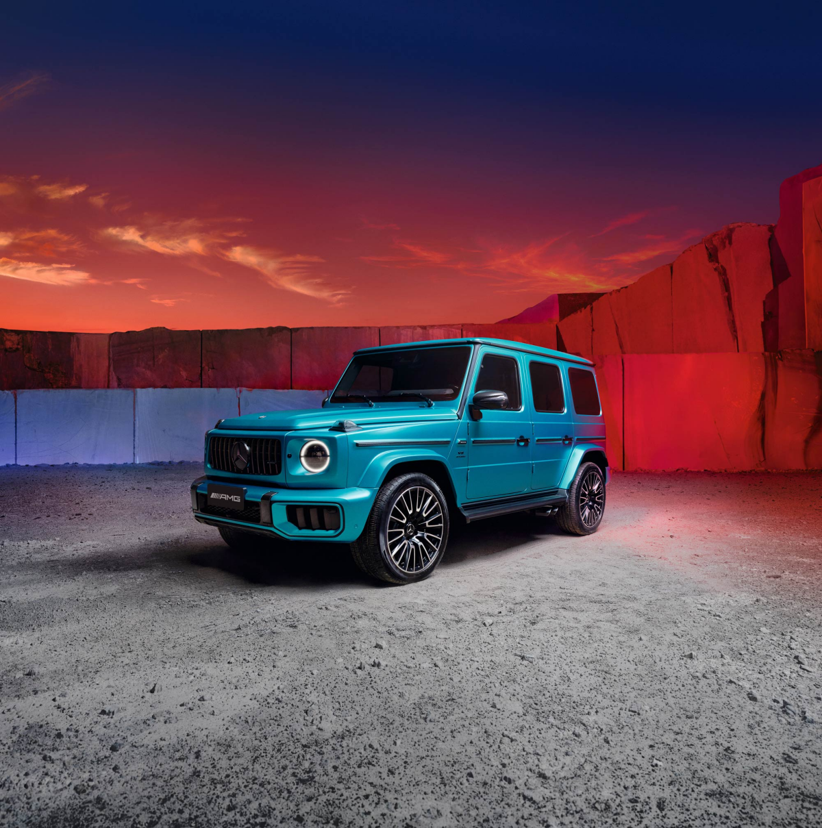 全新AMG G 63則同樣延續“方盒子造型”,並在煥新設計前保險槓的兩側進氣口,以3片垂直葉片點綴。為彰顯AMG家族的運動基因,AMG家族徽章首次出現在引擎蓋和外後視鏡投影。