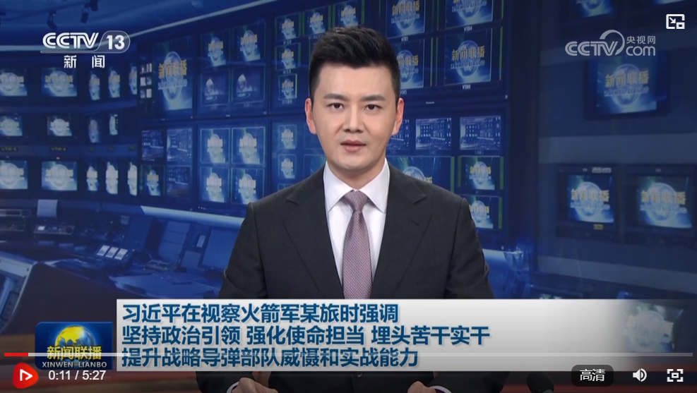 中共中央總書記、國家主席、中央軍委主席習近平17日到火箭軍某旅視察,強調要深入貫徹新時代強軍思想,貫徹新時代軍事戰略方針,把握戰略導彈部隊建設和作戰運用特點規律,堅持政治引領,強化使命擔當,埋頭苦幹實幹,推進部隊建設高質量發展,提升戰略威懾和實戰能力,堅決完成黨和人民賦予的各項任務。