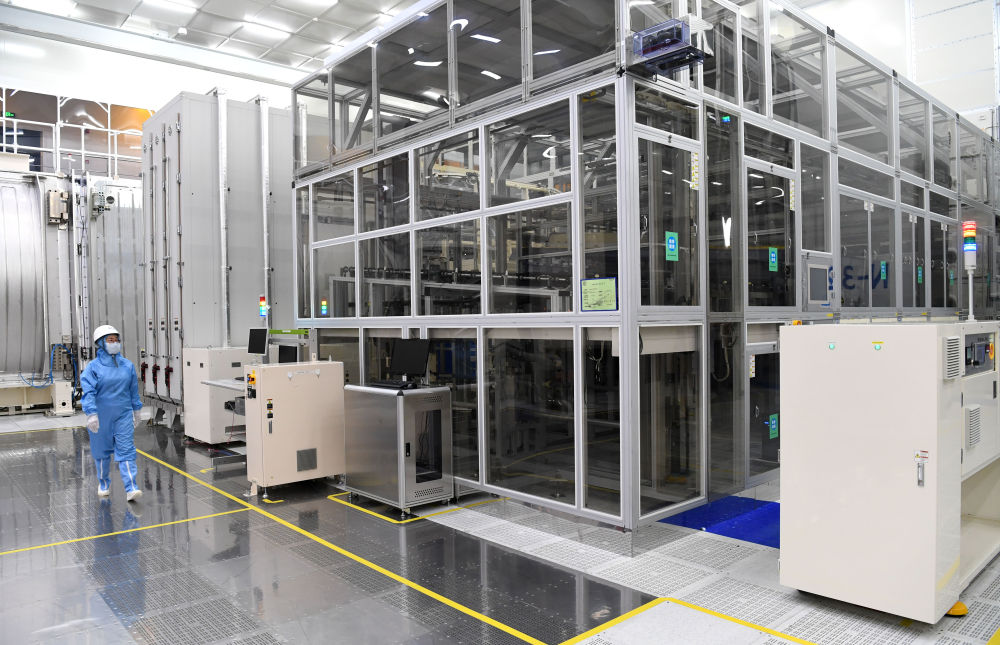 2022年7月28日,安徽合肥京東方顯示技術有限公司的工作人員在10.5代生產線上作業。