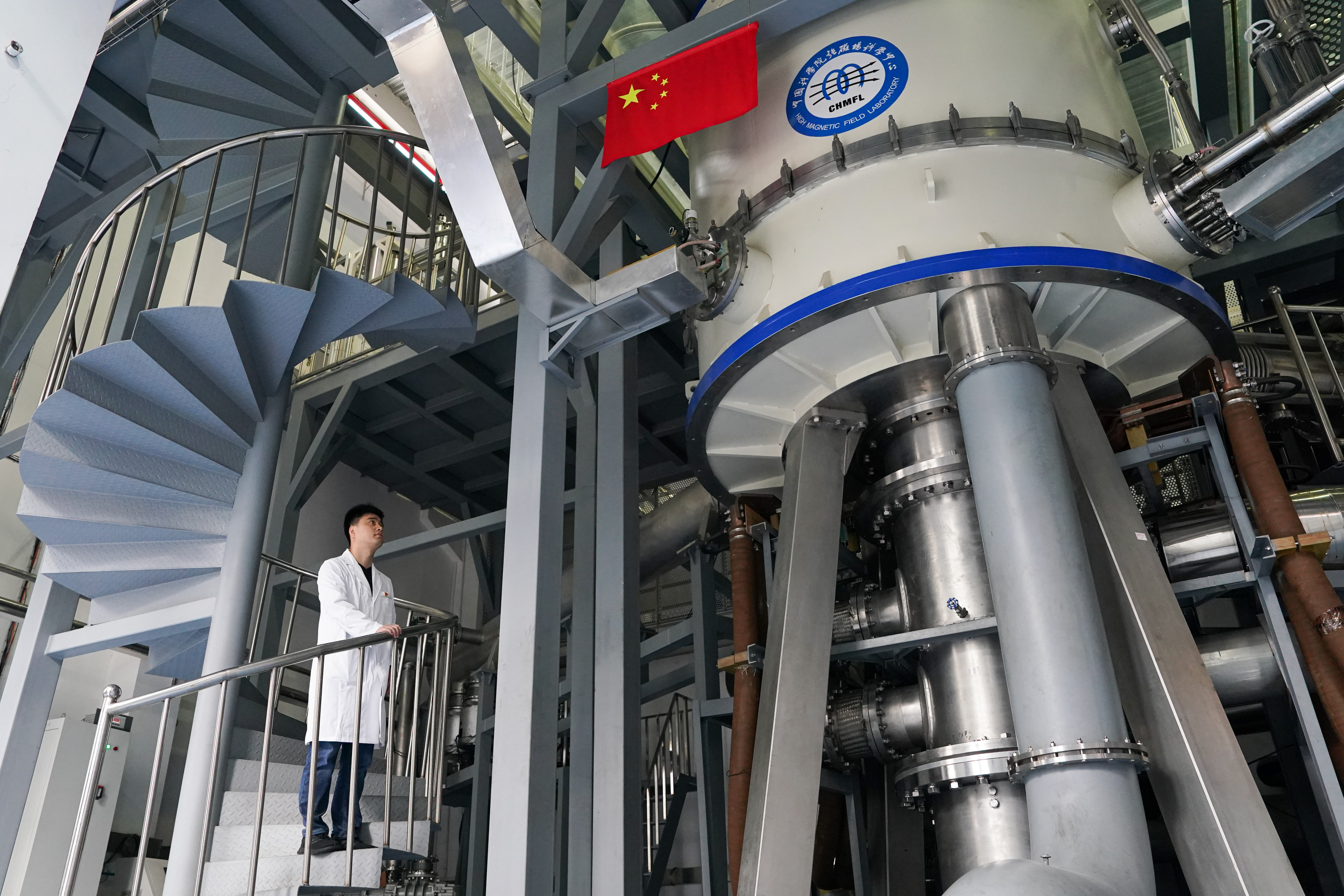 這是在中國科學院合肥物質科學研究院強磁場科學中心拍攝的國家重大科技基礎設施“穩態強磁場實驗裝置”混合磁體(2022年10月17日攝)。