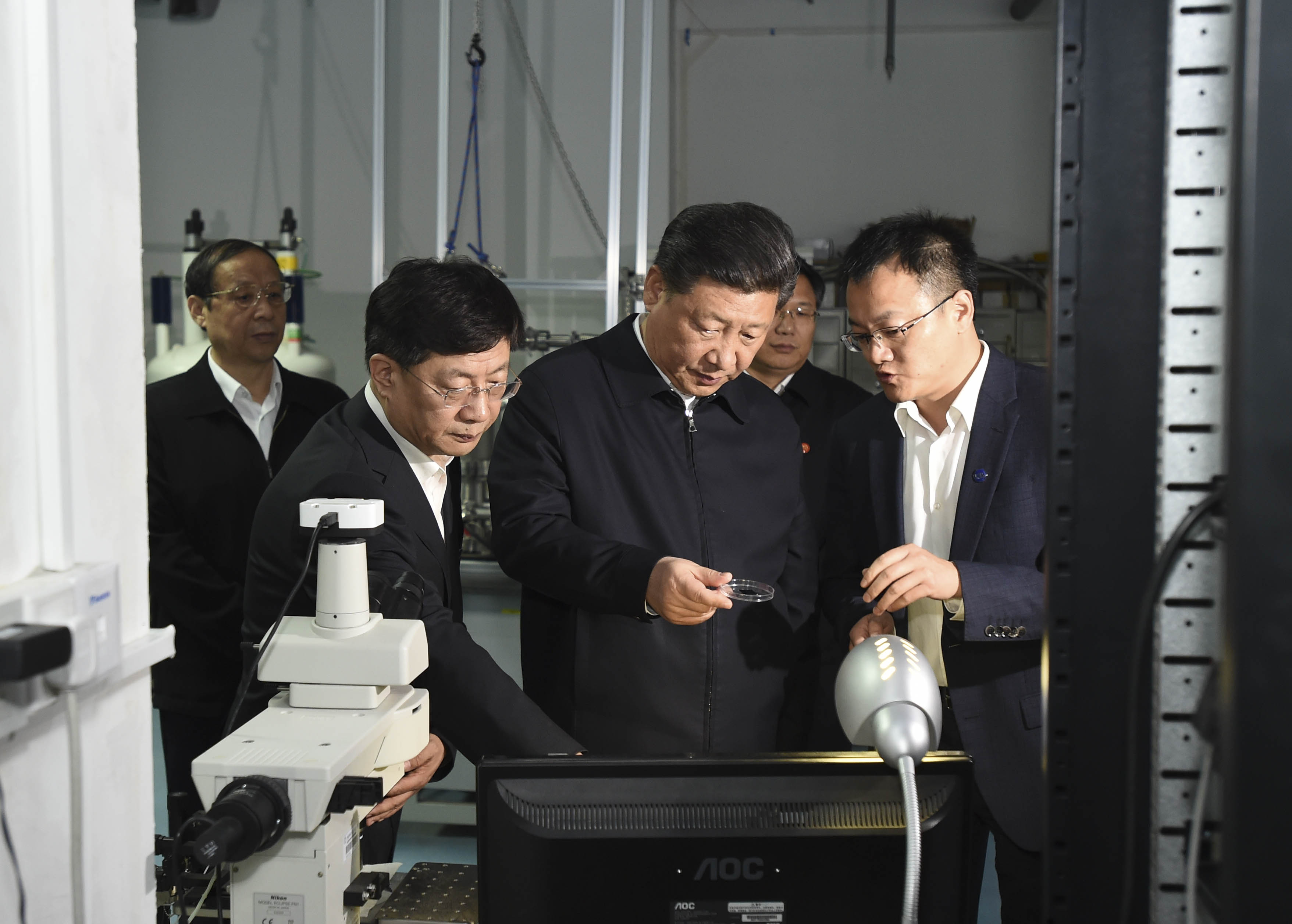 2016年4月26日,習近平在中國科技大學近代物理系自旋磁共振實驗室瞭解科研情況。