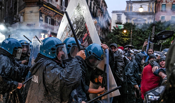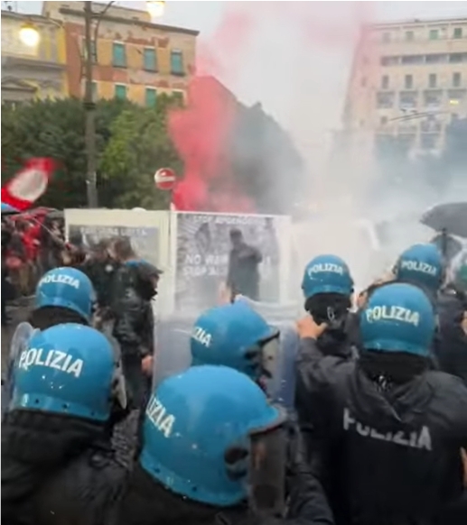 據意大利安莎通訊社報道,示威者與警方在那不勒斯市中心發生衝突。示威者向警方投擲石塊和瓶子,警方先用煙霧彈回應,後使用了警棍。沒有人員在衝突中受傷,但有幾人似乎受到煙霧和催淚瓦斯的影響。