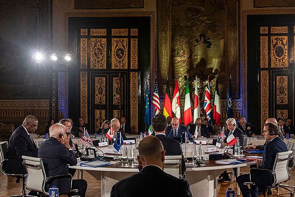 意大利今年擔任G7輪值主席國。北約秘書長呂特、歐盟外交與安全政策高級代表博雷利也出席了G7防長會議,烏克蘭國防部長烏梅羅夫參加了會談。