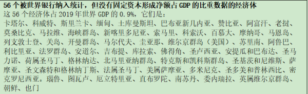 【1】 如果將世界上大多數在這方面與較大經濟體的增長模式相同的小型經濟體包括在內,那麼這93個經濟體合計佔世界GDP的90.4%,其相關性仍然保持在0.90的超高水平。如果使用固定資本形成淨額佔GDP比重與GDP之間0.80的高度相關性標準,那麼佔世界經濟的91.5%的117個經濟體,就包括在這一組別中。