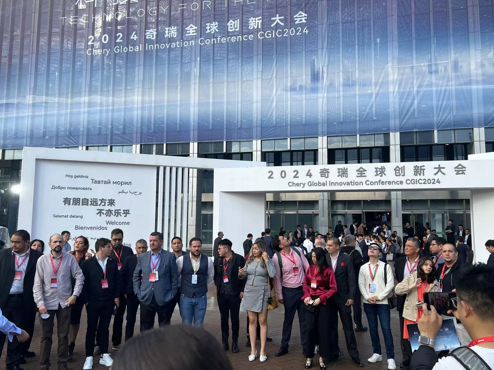 在本次大會上,奇瑞在會場門口用10種語言書寫的“有朋自遠方來,不亦樂乎”標語,以及上百位來自五湖四海的賓客,也證明了如今奇瑞在海外市場取得的成就。
