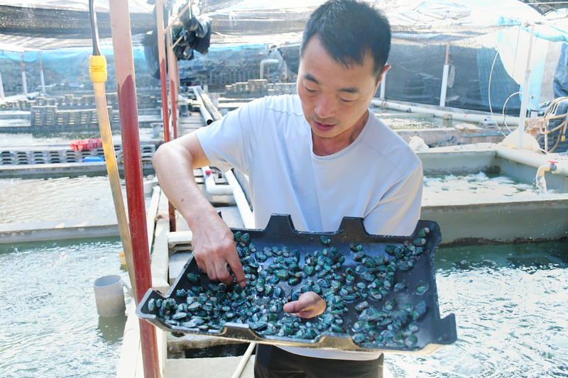 走進福建東山縣陳城鎮澳角村鮑魚養殖户郭漢棟的養殖場,新苗池與成品鮑魚苗池在兩側排開,養殖池智慧控制系統正在高效運轉。這些年,郭漢棟的鮑魚苗賣到了閩北、浙江等地,育苗收入穩步增長。