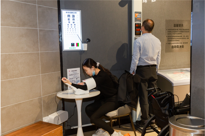 為了增強顧客體驗,店內新增了多項便民服務設施,包括免費的血壓、身高、體重測量設備。此外,休息區配備了自助飲水機、常用藥品以及愛心糖果,並提供了食品加熱服務、免費冰袋以及充電站。同時,還特別設立了母嬰室和寵物寄存櫃。
