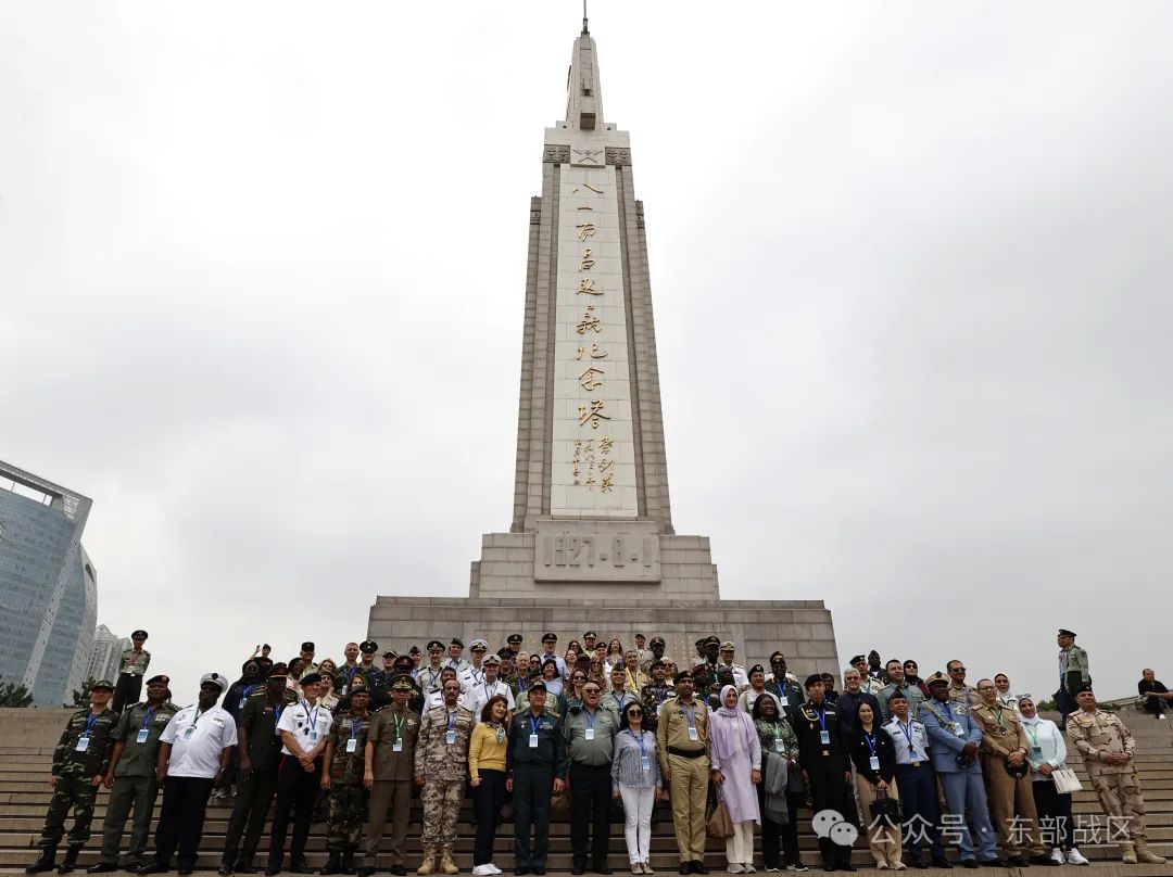 駐華武官及配偶在南昌八一起義紀念塔前合影留念。