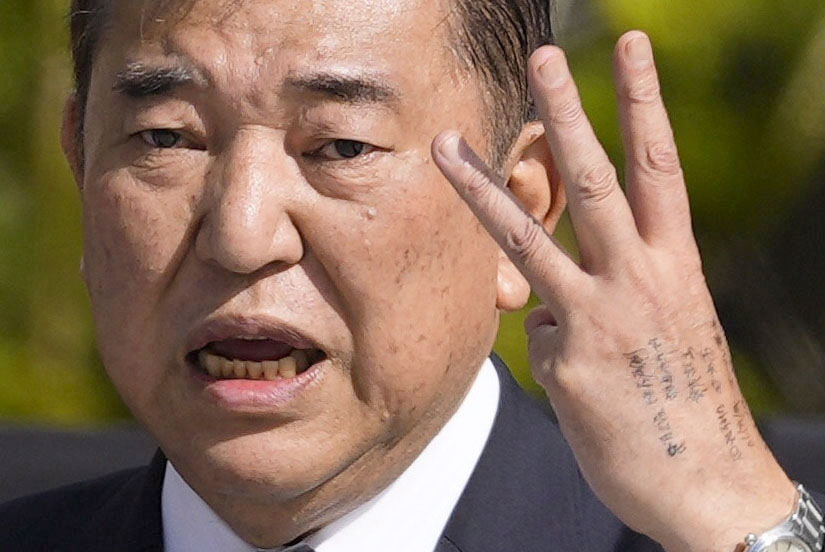 日本首相石破茂在手背上“打小抄”
