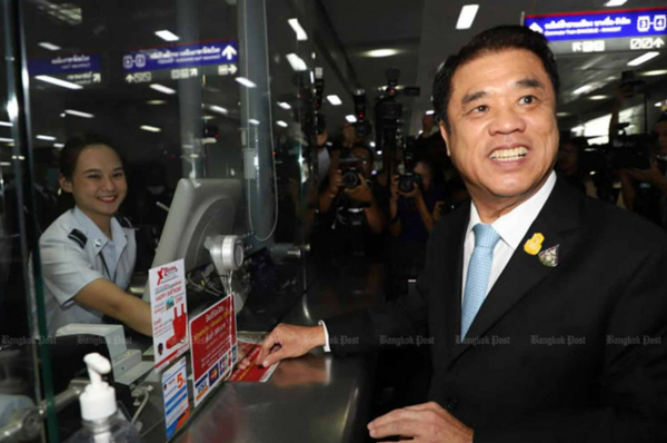 2023年開始部分實施統一票價後,泰國副總理兼交通部長素里亞在曼谷城郊鐵路紅色線購票《曼谷郵報》