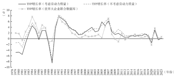 1978—2023年中國TFP增速變動情況。《經濟研究》2024年第4期