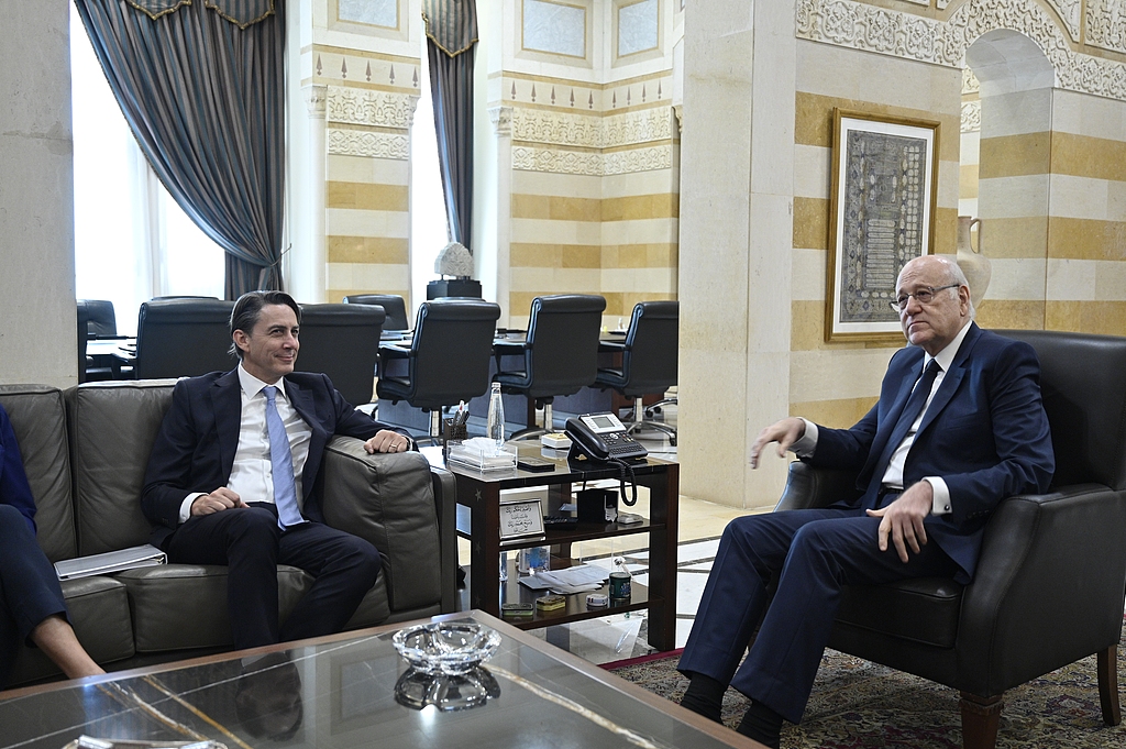當地時間2024年10月21日,黎巴嫩貝魯特,黎巴嫩看守總理米卡提會見美國總統特使霍克斯坦 視覺中國
