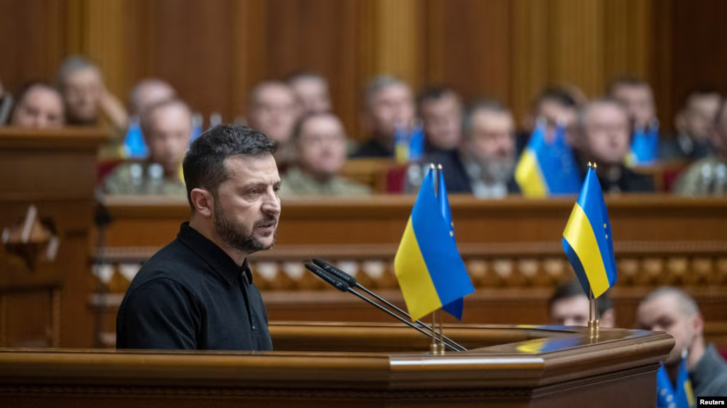 2024年10月16日,烏克蘭總統澤連斯基在基輔向烏克蘭議會提交勝利計劃。 路透社