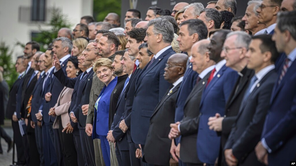 2024年6月15日在瑞士出席烏克蘭和平峯會的領導人拍攝合影。 AP