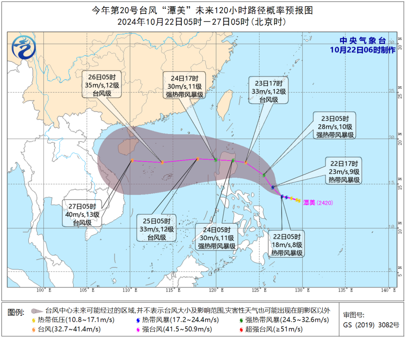 據中央氣象台網站22日消息,今年第20號颱風“潭美”生成。
