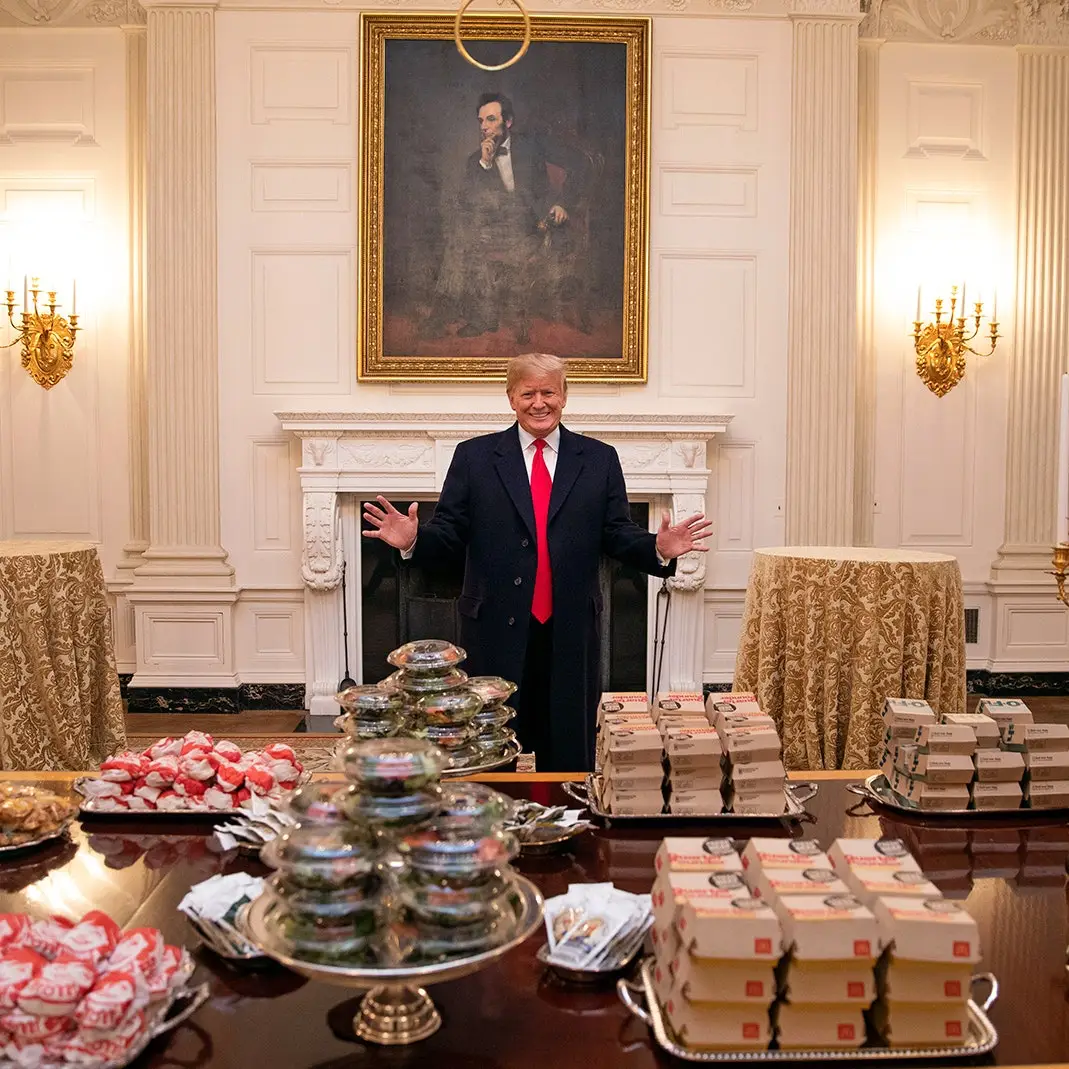 1.首先,特朗普本來就很喜歡吃麥當勞。這不是為了作秀,而是他確實喜歡。他的兒子小特朗普(Donald Trump Jr)説,特朗普是吃麥當勞最多的人,沒有第二。特朗普的高級顧問和女婿Jared Kushner透露,他每頓的標準點餐是兩個巨無霸,兩個麥香魚,一個大的巧克力或香草奶昔。他在白宮多次舉辦過麥當勞盛宴,招待來訪的美國大學橄欖球隊隊員。特朗普經常打高爾夫球,活動很多,不喝酒,體胖和大量食用快餐有關。