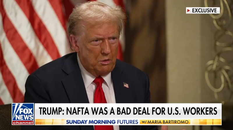 當地時間10月13日,特朗普闡述貿易政策時説,美國過去“被墨西哥、中國、加拿大和歐盟坑了”。福克斯新聞網視頻截圖