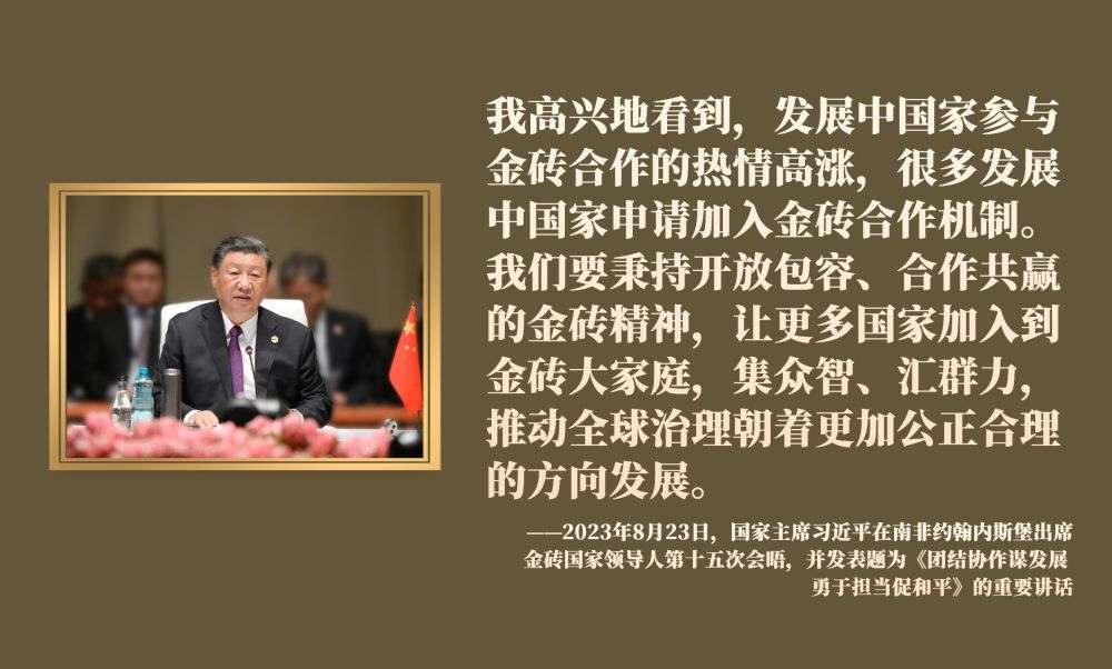 中國一直是金磚擴員的積極推動者。從2017年中國提出“金磚+”合作模式、首次將金磚合作伙伴對象擴大至全球範圍,到如今實現歷史性擴員,金磚成色更足、分量更重、影響更大。