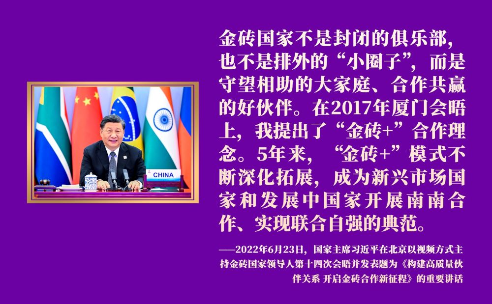 面向未來,金磚國家敞開大門謀發展、張開懷抱促合作。中國將攜手金磚夥伴,推動“大金磚合作”不斷取得新成果。
