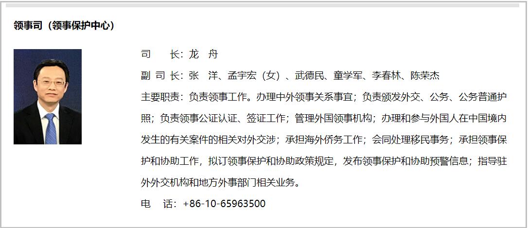 10月22日,觀察者網從外交部網站了解到,原駐馬拉維大使龍舟目前已任外交部領事司(領事保護中心)司長。
