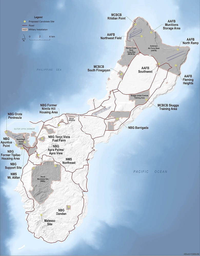 關島上20處考慮部署反導發射器和傳感器的示意圖 美國導彈防禦局(MDA)