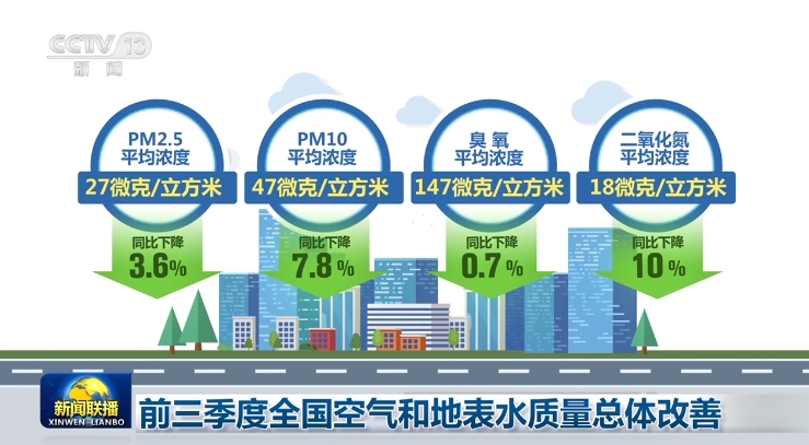 6.前三季度全國空氣和地表水質量總體改善