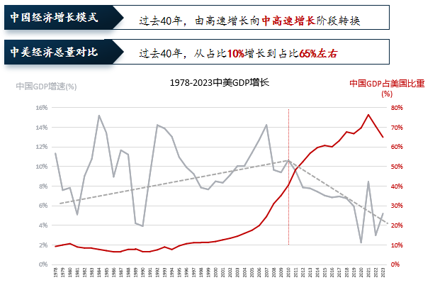 中國的GDP過去曾經長期在美國的10%以下,別看我們改革開放以來經濟增長達到兩位數,那是因為我們那時候總的經濟體量很小,所以我們漲10%可能比美國的經濟漲1%的絕對量還要小。