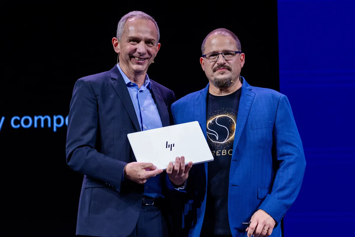 高通首席執行官克里斯蒂亞諾·阿蒙(右)與惠普公司高管恩裏克·洛雷斯