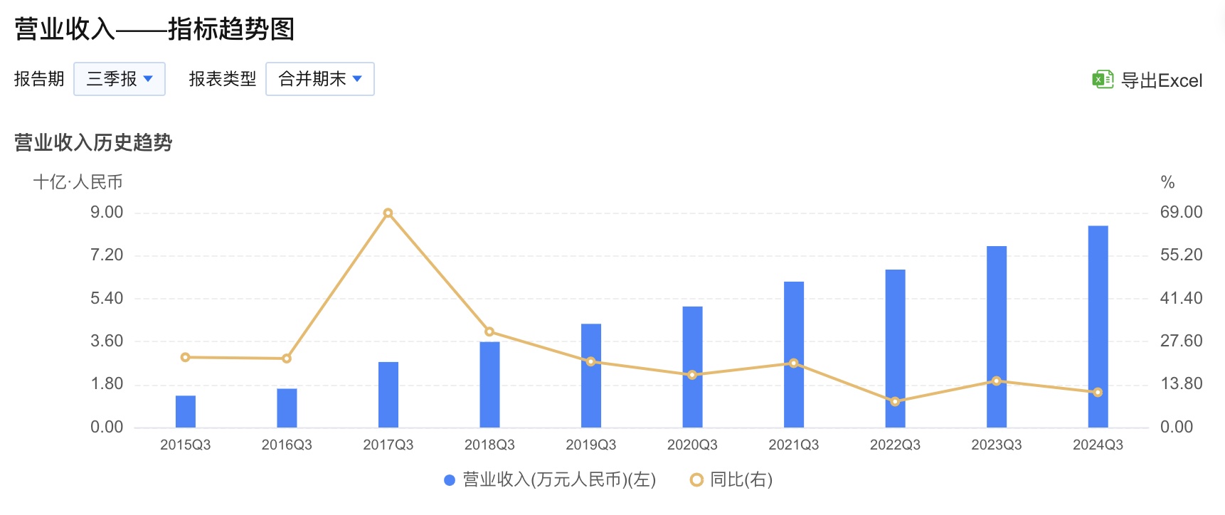 從單季度表現來看,2024年第三季度,片仔癀實現營收28億元,同比增長9.6%;歸母淨利潤9.65億元,同比增長11.73%。然而,這一成績卻是除了2022年新冠大流行外公司三季度單季度營收和淨利潤增幅最差的表現,其中營收增幅更是首度跌至個位數。