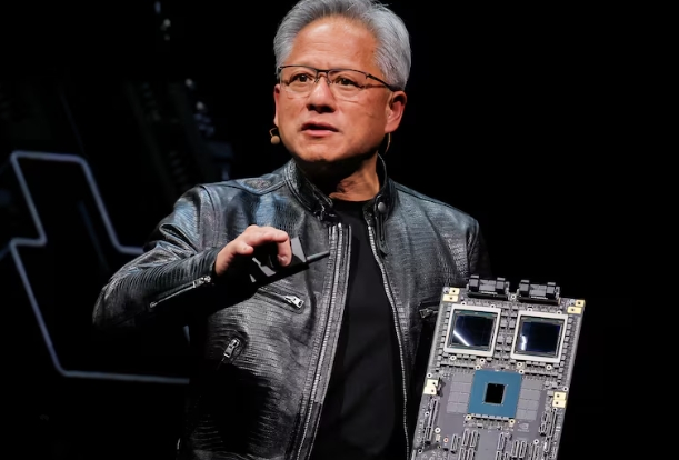 今年6月,黃仁勳在台北展示Blackwell芯片 路透社