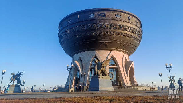 △大鍋形建築——“喀山家庭中心”。(總枱央視記者王萌萌拍攝)