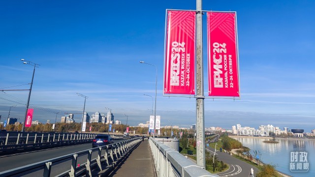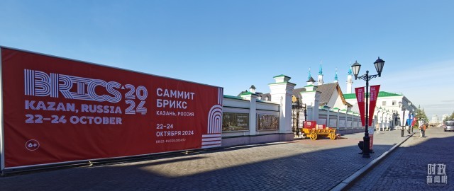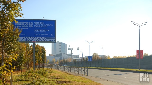 △俄羅斯喀山街頭的金磚元素。(總枱央視記者王萌萌拍攝)