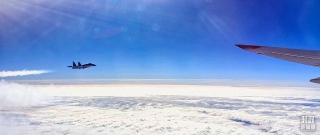 △習主席乘坐的專機進入俄羅斯領空時,俄空軍戰機升空護航。(總枱央視記者李錚拍攝)