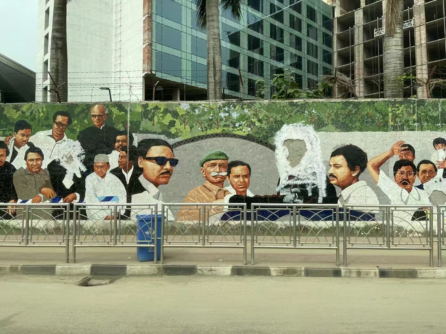 達卡街頭被損毀後的壁畫,國父拉赫曼頭像被擦除 作者供圖
