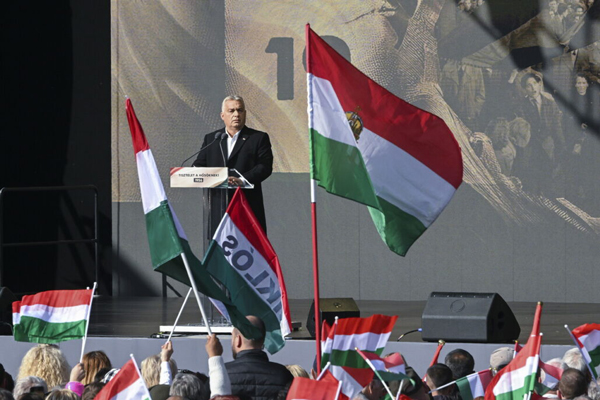 綜合“匈牙利每日新聞”(Daily News Hungary)、路透社等媒體報道,當地時間10月23日,歐爾班在匈牙利首都布達佩斯的千禧年公園,向其支持者發表講話。他説,匈牙利知道,歐盟想迫使匈牙利捲入烏克蘭戰爭之中,“他們想把移民強加給我們,把我們的孩子交給性別活動家”。
