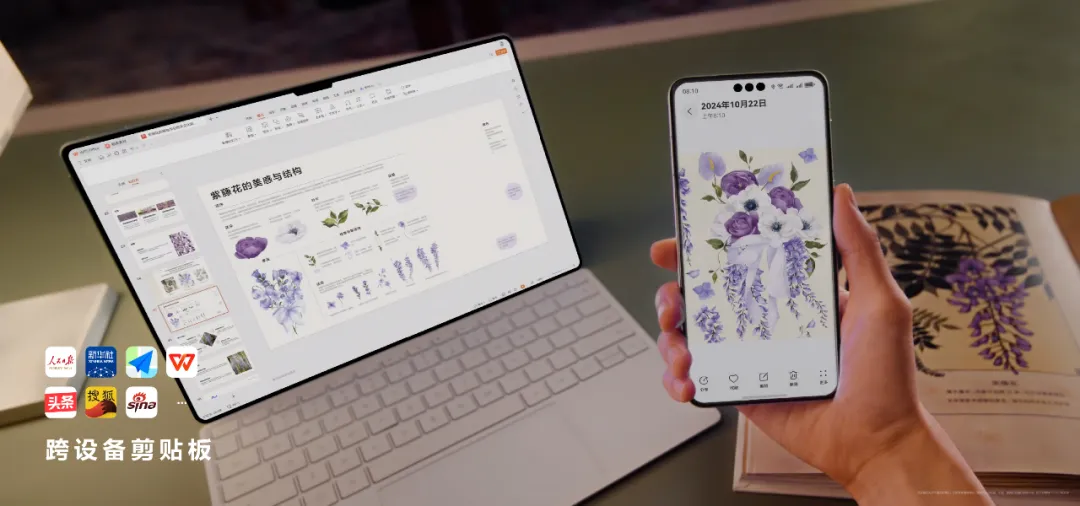 以代碼多達4000萬行的巨型軟件金山WPS Office為例,藉助原生鴻蒙完備的編程工具,WPS Office鴻蒙原生版順利解決跨語言開發過程中的痛點,只需要一次開發,就能實現全平台功能體驗一致。在實際使用過程中,用户只需將手機和平板一碰連接,就能通過鼠標或觸控選擇手機端的圖片,直接插入到平板端的WPS Office中,還能靈活跨端調用相機、手寫筆等。