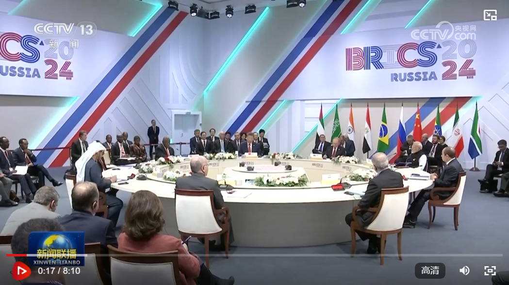 當地時間10月23日上午,金磚國家領導人第十六次會晤在喀山會展中心舉行。俄羅斯總統普京主持會晤。中國國家主席習近平、巴西總統盧拉(線上)、埃及總統塞西、埃塞俄比亞總理阿比、印度總理莫迪、伊朗總統佩澤希齊揚、南非總統拉馬福薩、阿聯酋總統穆罕默德等出席。習近平發表重要講話。新華社記者 謝環馳 攝