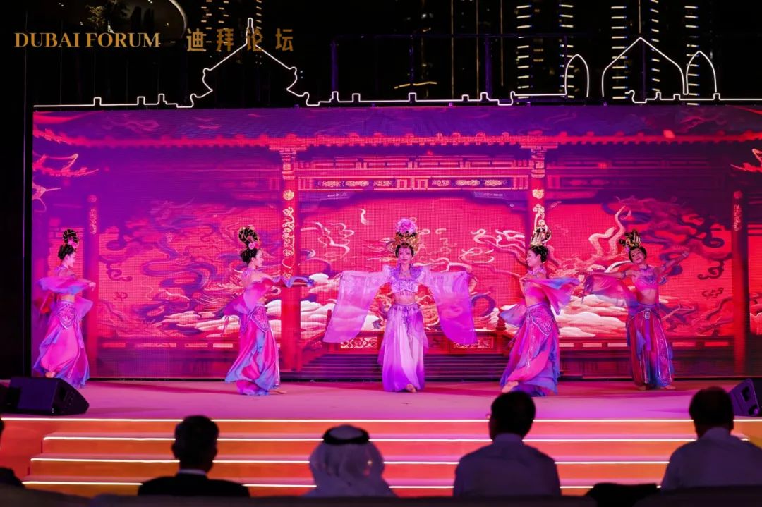 會場內,羣英薈萃,討論熱烈。 中國建築集團有限公司總經理文兵,中國銀行前首席經濟學家曹遠征,中國國際經濟交流中心總經濟師陳文玲,前中國政府中東問題特使、外交部外交政策諮詢委員會委員吳思科大使,中國公共關係協會副會長董關鵬,迪拜大學校長巴斯塔基,新媒體學院首席執行官阿託利等數十位中阿各界嘉賓圍繞上述議題發表觀點、貢獻智慧。 會場外,建交40年各領域成就互動展、中國新能源汽車和8K超高清屏幕等展示,以及“風花雪月”主題茶藝古琴展演輪番上演。 迪拜論壇暨建交40週年招待酒會上,陝西廣電集團、歌舞劇院、京劇院及迪拜華僑代表同台獻藝,帶來為迪拜論壇精心原創的文藝表演。 伊瑪爾集團為獻禮中阿建交40週年特別製作的主題燈光秀於招待酒會期間首發,點亮世界第一高樓哈利法塔。 人民日報社、新華社、中央廣播電視總枱、觀察者網、香港衞視、嗶哩嗶哩、中阿衞視,阿聯酋《宣言報》《海灣時報》《國民報》《綠洲報》等近20家中外媒體參與本次論壇報道。