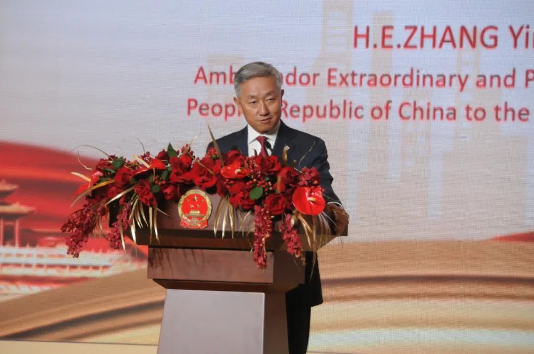 張益明大使在開幕式致辭中表示,中國和阿聯酋是全面戰略伙伴也是志同道合的好朋友,更是守望相助的好兄弟。 中國是阿聯酋第一大貿易伙伴,阿聯酋是中國在阿拉伯地區第一大非石油貿易伙伴、最大出口市場和最大投資目的地。 中阿合作沒有最好、只有更好,我們今天立足本地放眼世界、着眼當下放眼未來,為推動新形勢下中阿能源、青年和媒體等領域交流合作建言獻策、貢獻智慧。