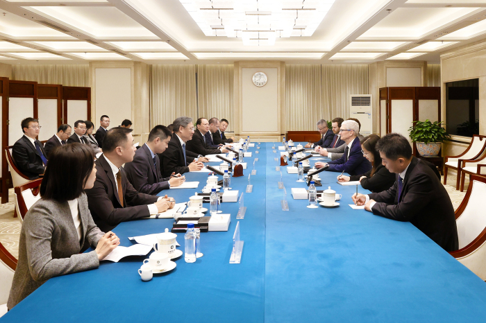 王文濤強調,**互利共贏的中美經貿合作符合兩國的根本利益,是兩國關係的穩定力量。泛化國家安全不利於正常的經貿往來。**中方願通過經常性的政企交流,助力中美經貿關係回到健康穩定的發展軌道。