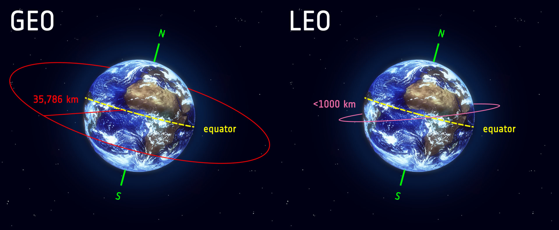 地球同步軌道(GEO)與近地球軌道(LEO)示意圖。NASA官網
