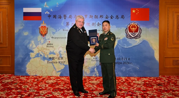 據微信公眾號“中國海警”消息,2024年10月21日,中國海警局與俄聯邦安全總局在北京舉行中俄海警第二次高級別會晤。會晤由中國海警局局長鬱忠和俄聯邦安全總局邊防局副局長、海警司司長託洛克海軍上將共同主持。