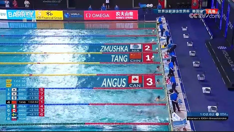 唐錢婷奪得游泳世界盃仁川站女子100米蛙泳金牌