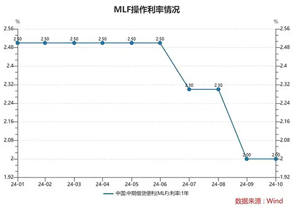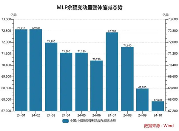 為維護銀行體系流動性合理充裕,2024年10月25日,人民銀行開展7000億元中期借貸便利(MLF)操作,期限1年,最高投標利率2.30%,最低投標利率1.90%,中標利率2.00%。
