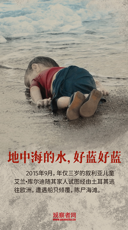 2015年9月,年僅三歲的敍利亞兒童艾蘭·庫爾迪隨其家人試圖經由土耳其逃往歐洲,遭遇船隻傾覆,陳屍海灘。