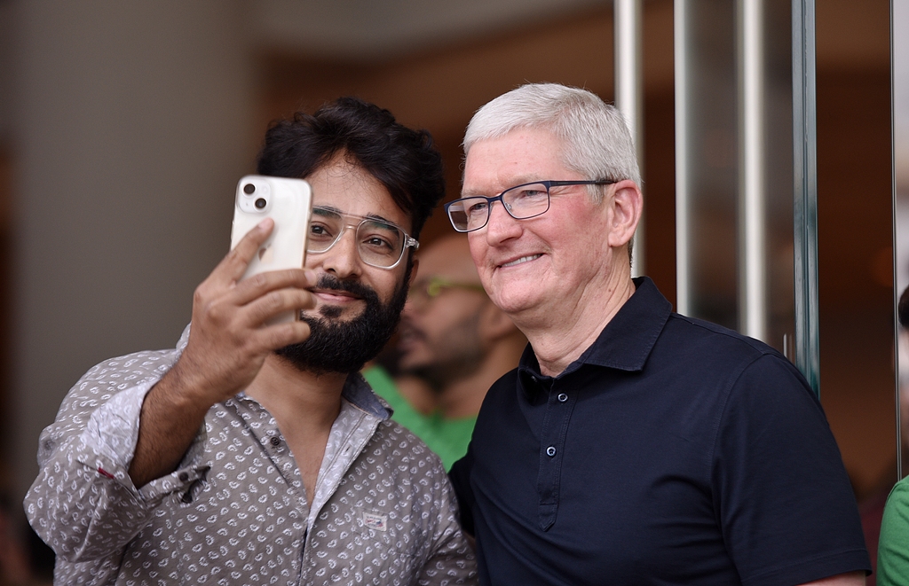2023年4月18日,印度首家蘋果零售店開業,庫克出席開業儀式。視覺中國
