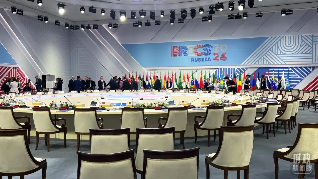 △今年“金磚+”領導人對話會在喀山會展中心舉行,這是對話會開始前的現場。(總枱央視記者程鋮拍攝)